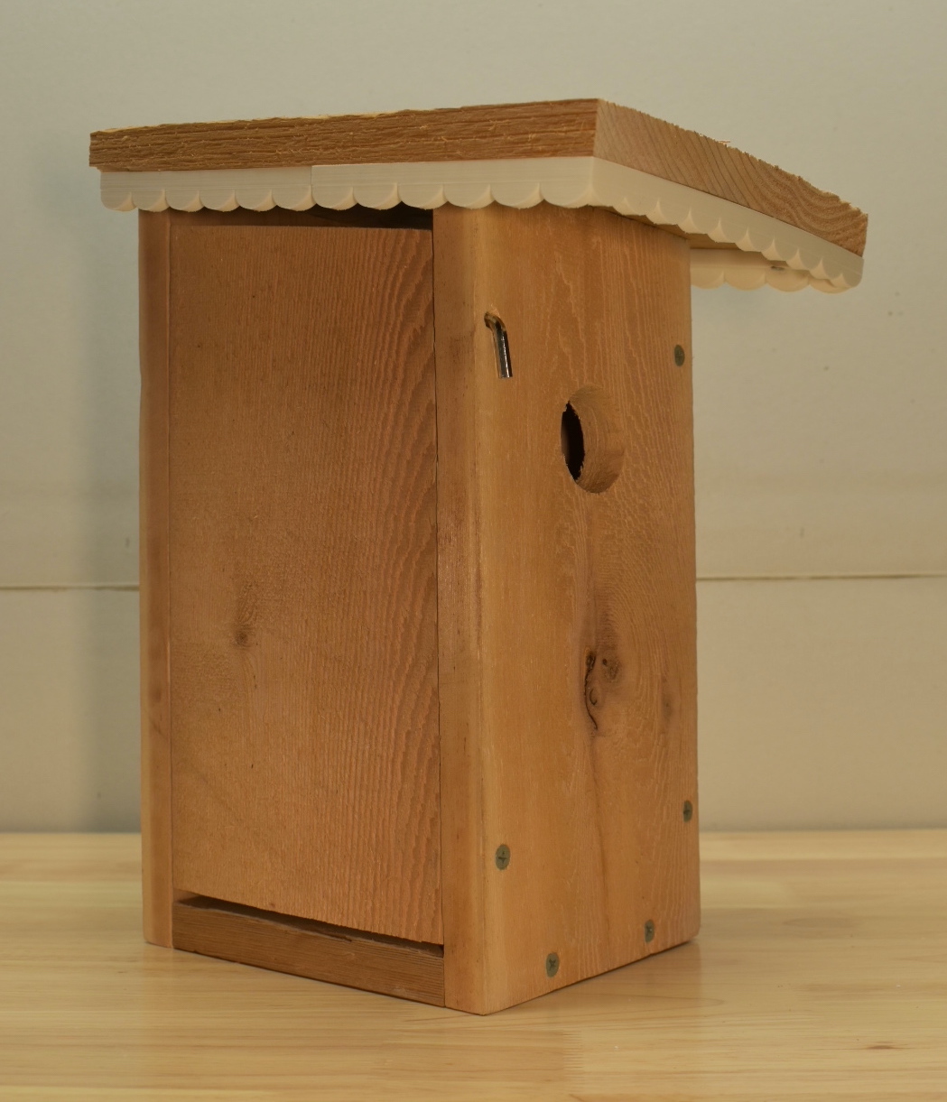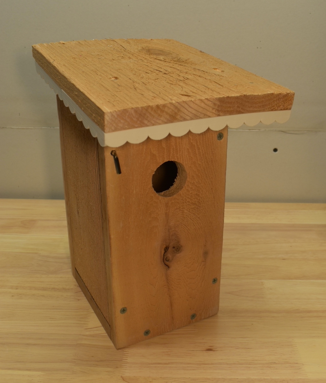 I recently built an Eastern Bluebird house. I used plans shared by the Oklahoma State University Extension Office, using their “Plan A” (Simplicity) design with 3/4" cedar boards. What I thought may be helpful in sharing was the 3D model design I created for having some white trim added to the roof of the house. I thought it would be nice to add a little character to the house, and we previously had a cottage house that has this type of looking trim. So, I thought I would share this if you also have bluebirds in your area, and are looking to provide them with a new home that has some charm.