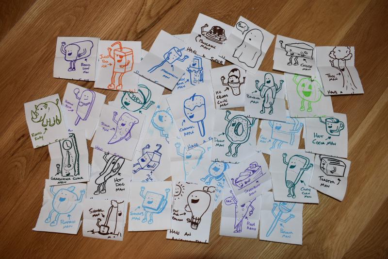 I decided that I would draw a character, that would be something different each time. These ended up having a likeness to Mr. Peanut or The California Raisins (oh, how I loved their TV specials as a kid). As a result, I would make banana man, apple man, etc. These would also include a message, but the messages didn’t vary too much, a greeting and sharing something positive about the day (“Happy Tuesday! Have a great afternoon!”).